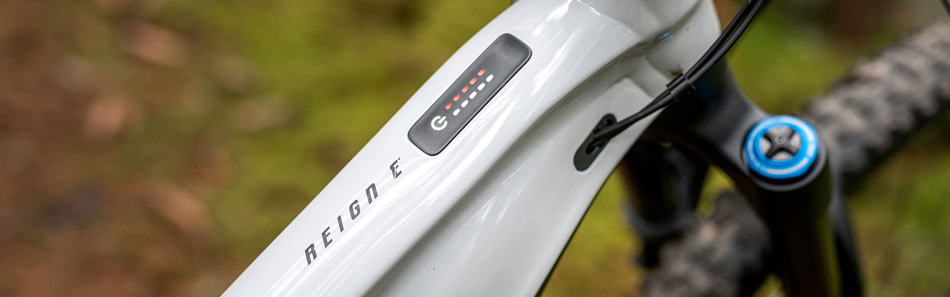 Available on premium Giant E-bikes, RideControl Go features a multipurpose button integrated into the top tube. Colored LEDs allow you to switch power modes from the top tube and keep a clean handlebar setup. The lights also display battery level and support mode.